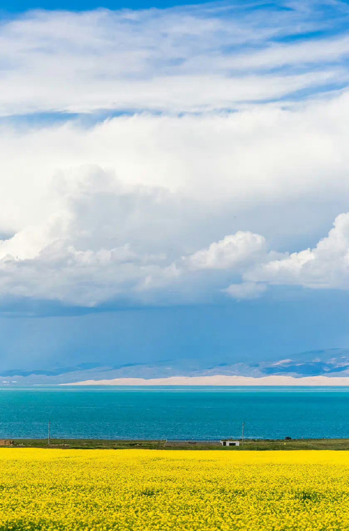 青海湖,我国最大的咸水湖,被誉为“天空之镜”,湖面辽阔,湖水清澈,与蓝天白云相映成趣,每当夏日来临,湖边金黄的油菜花海,更是美不胜收。🌺